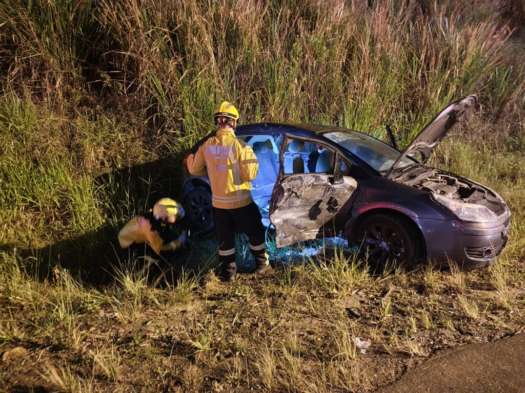 Ao chegarem ao local, as guarnições confirmaram a existência de cinco vítimas, sendo que a situação mais delicada era a de uma passageira que ocupava o banco traseiro de um Citroën C4 cinza. A mulher estava presa no interior do automóvel, apresentando confusão mental, dor torácica intensa e baixa saturação de oxigênio. Para resgatá-la, os bombeiros da viatura ABTR-114 realizaram o desencarceramento, criando uma abertura de acesso para a retirada da vítima em ângulo de 90 graus, que foi imediatamente entregue aos cuidados da equipe médica da unidade avançada do SAMU.