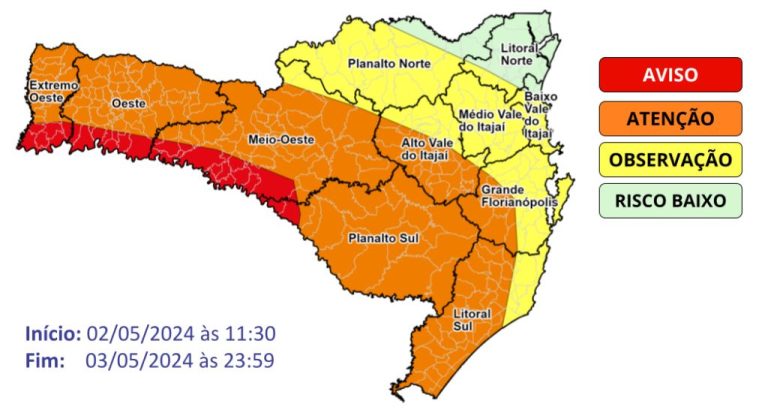 Nesta sexta-feira (03), a frente fria, agora associada a um sistema de baixa pressão no Paraguai, mantém o tempo instável e com chuva em SC, que permanece…